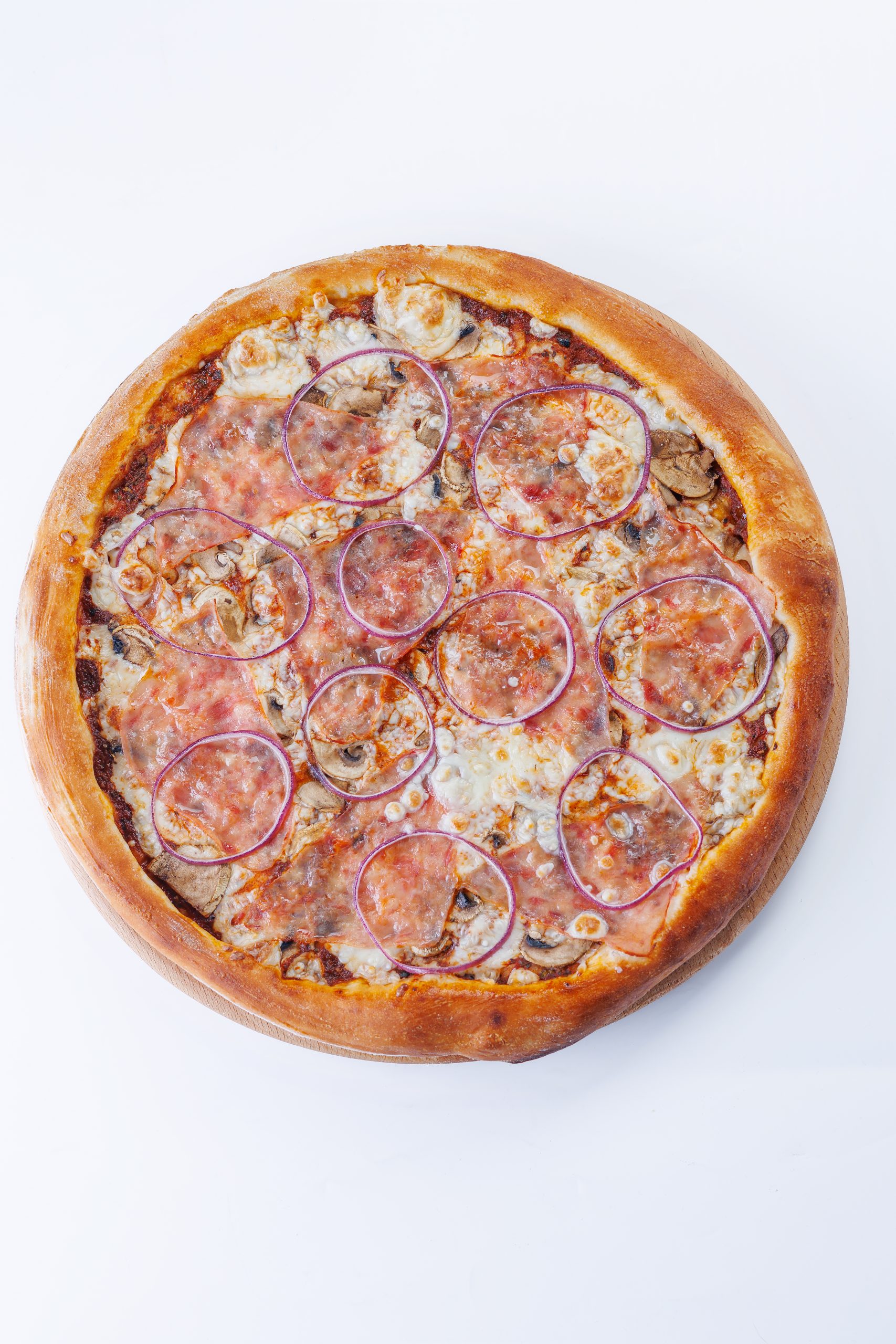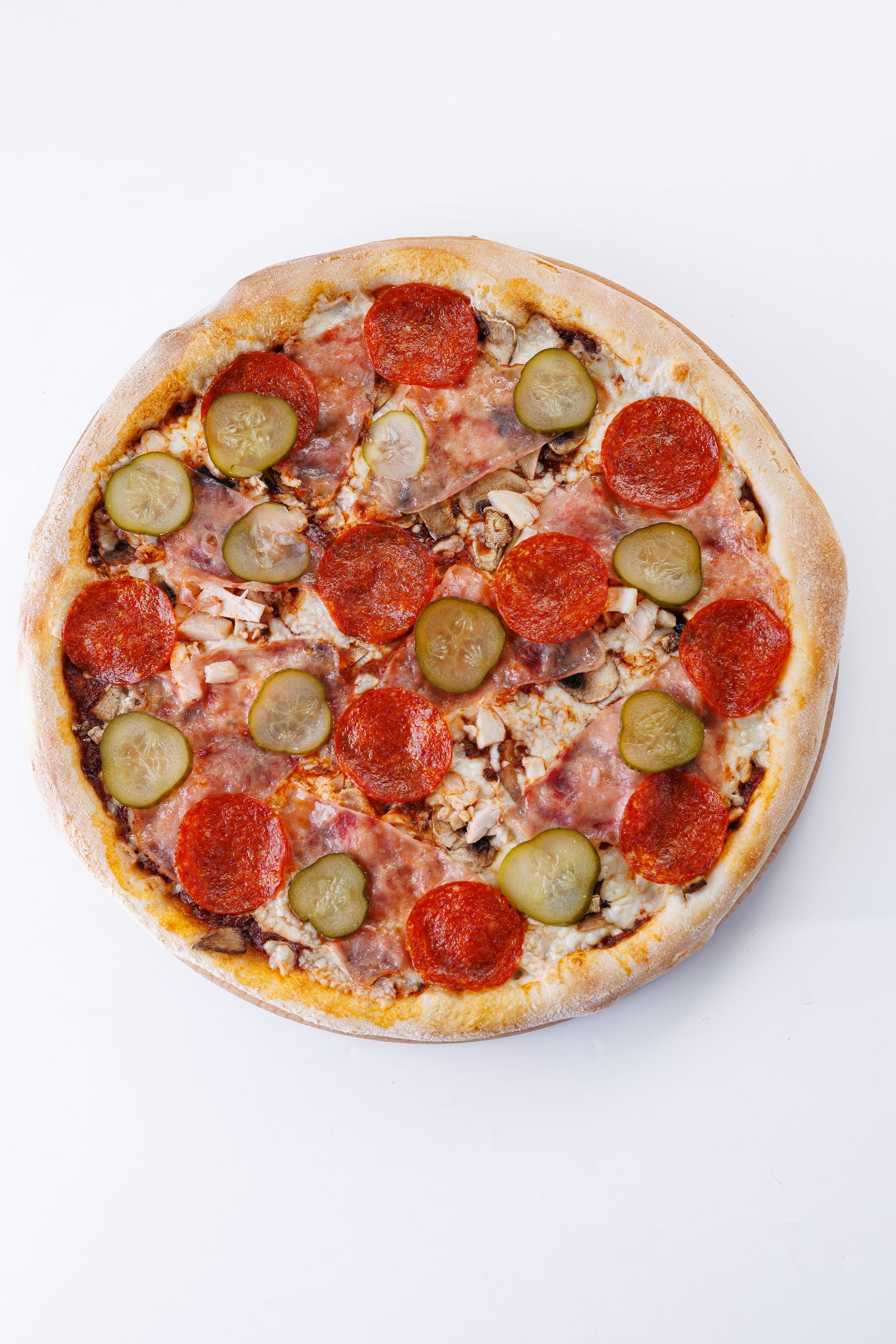 моцарелла, куриное филе, огурцы маринованные, пеперони, ветчина, сервелат