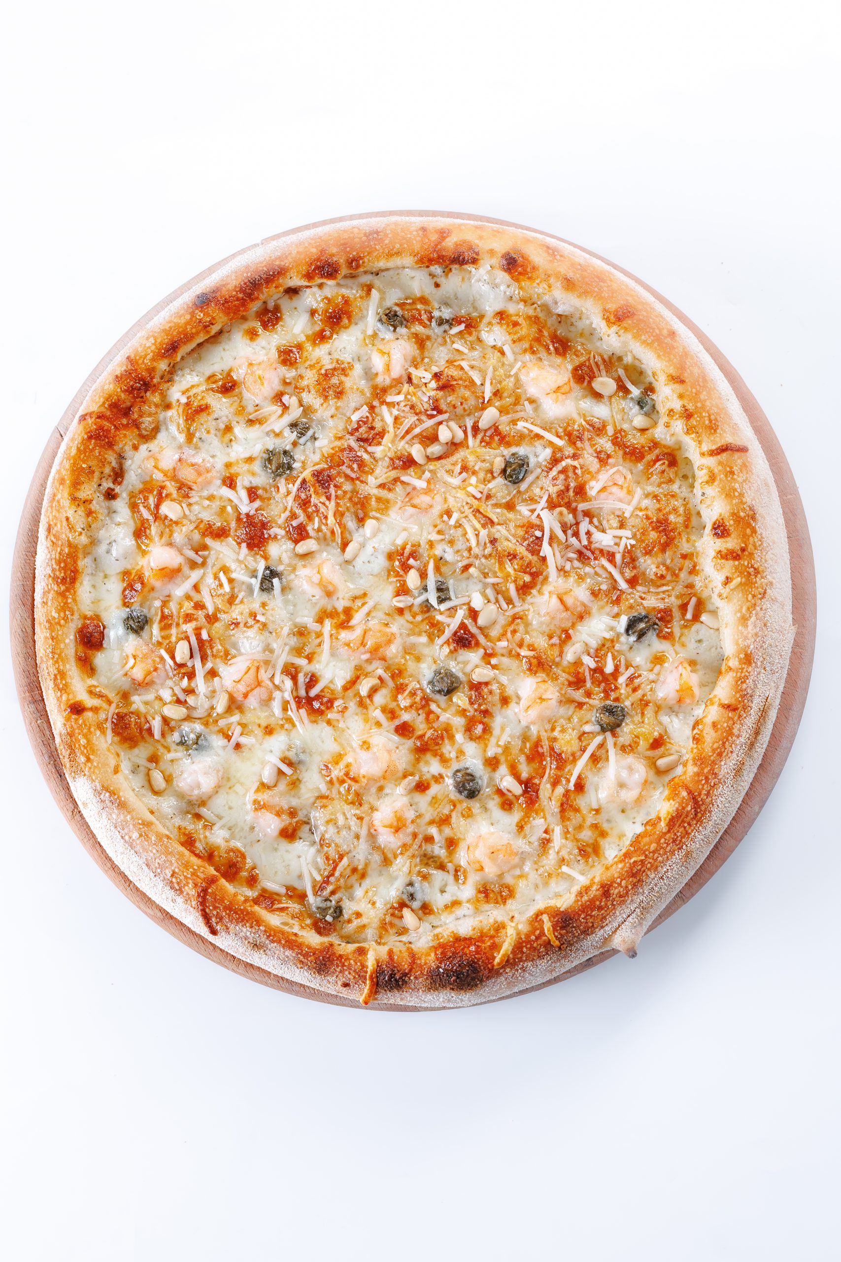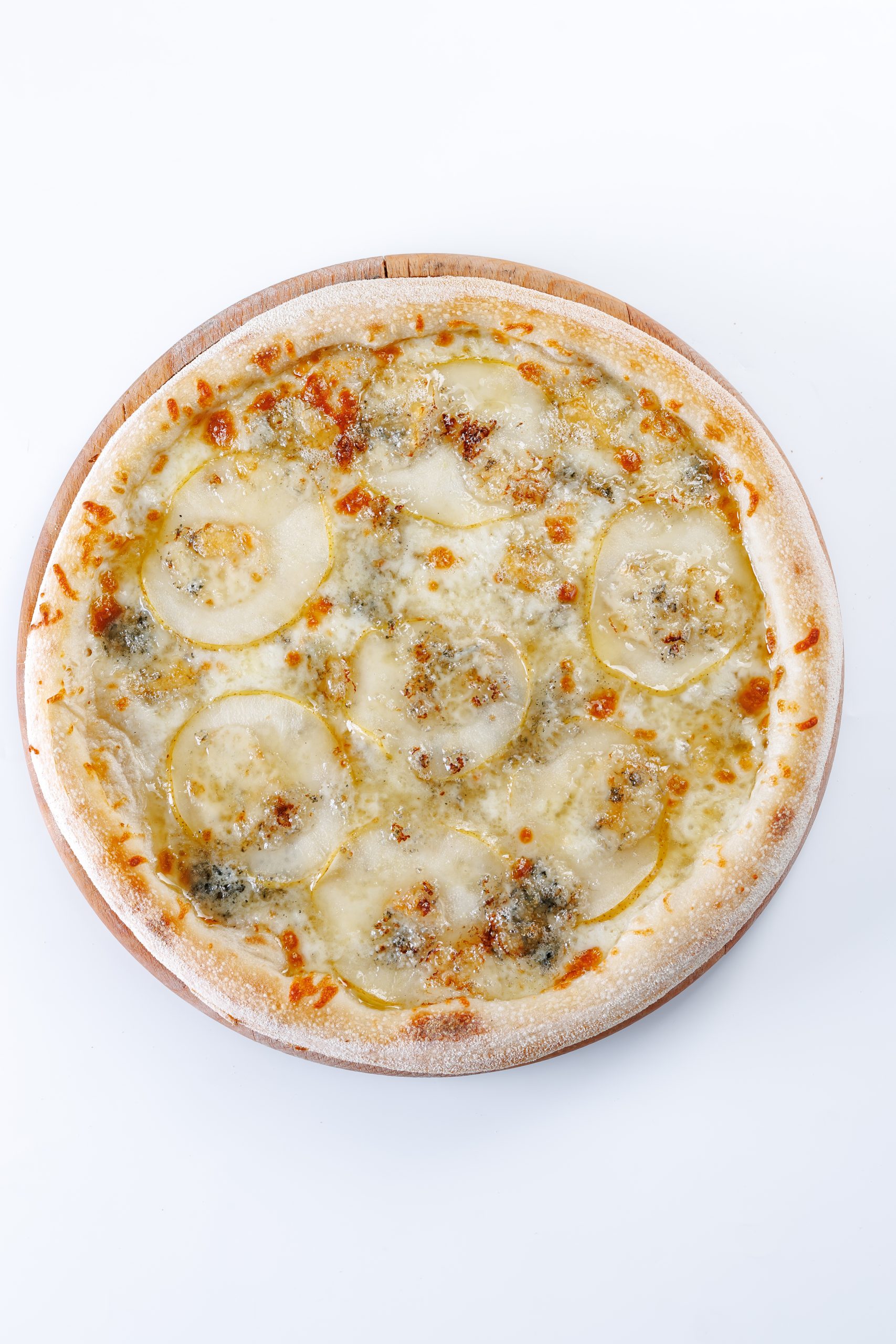 груша, соус бешамель, кедровый орех, блю чиз, моцарелла, мёд