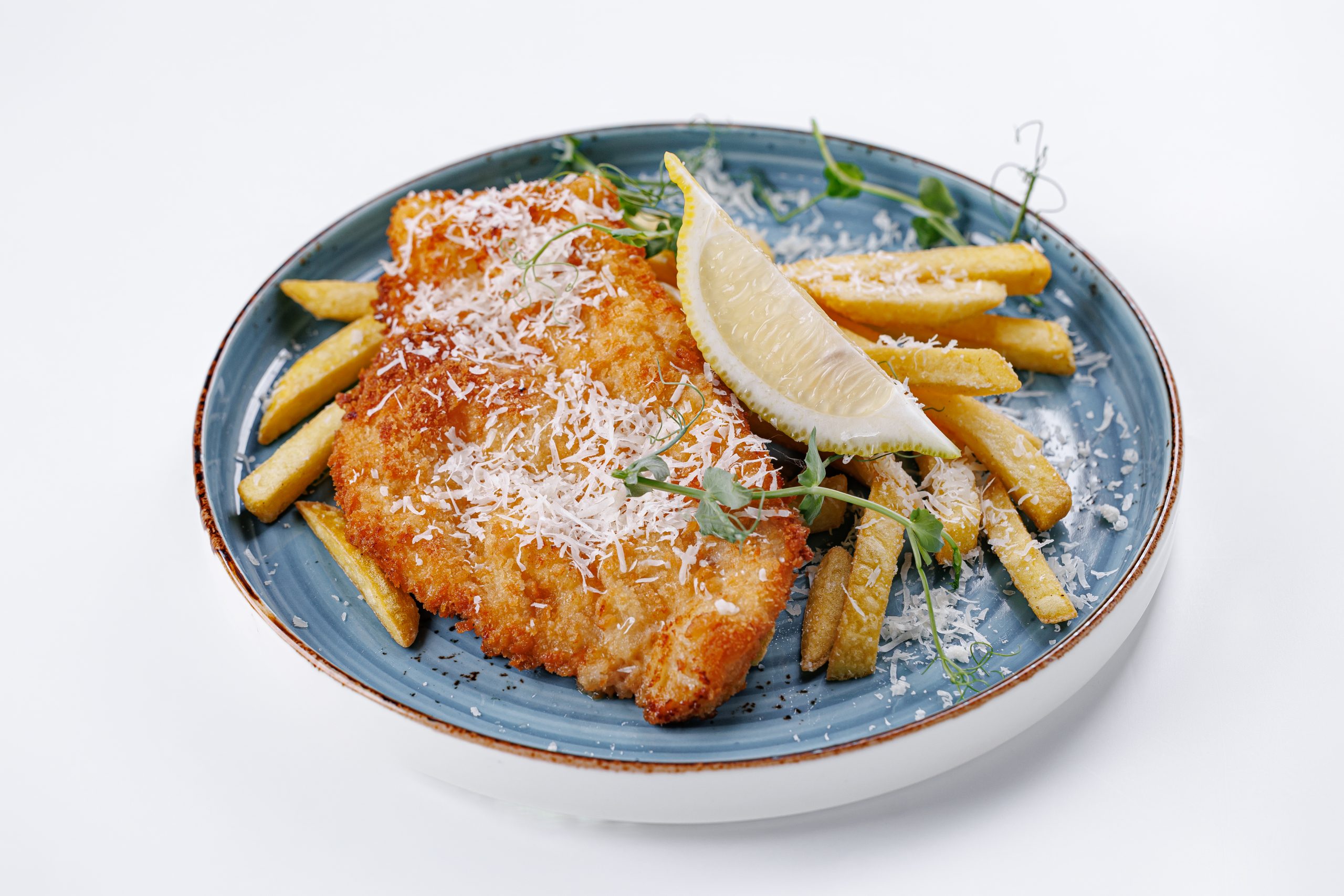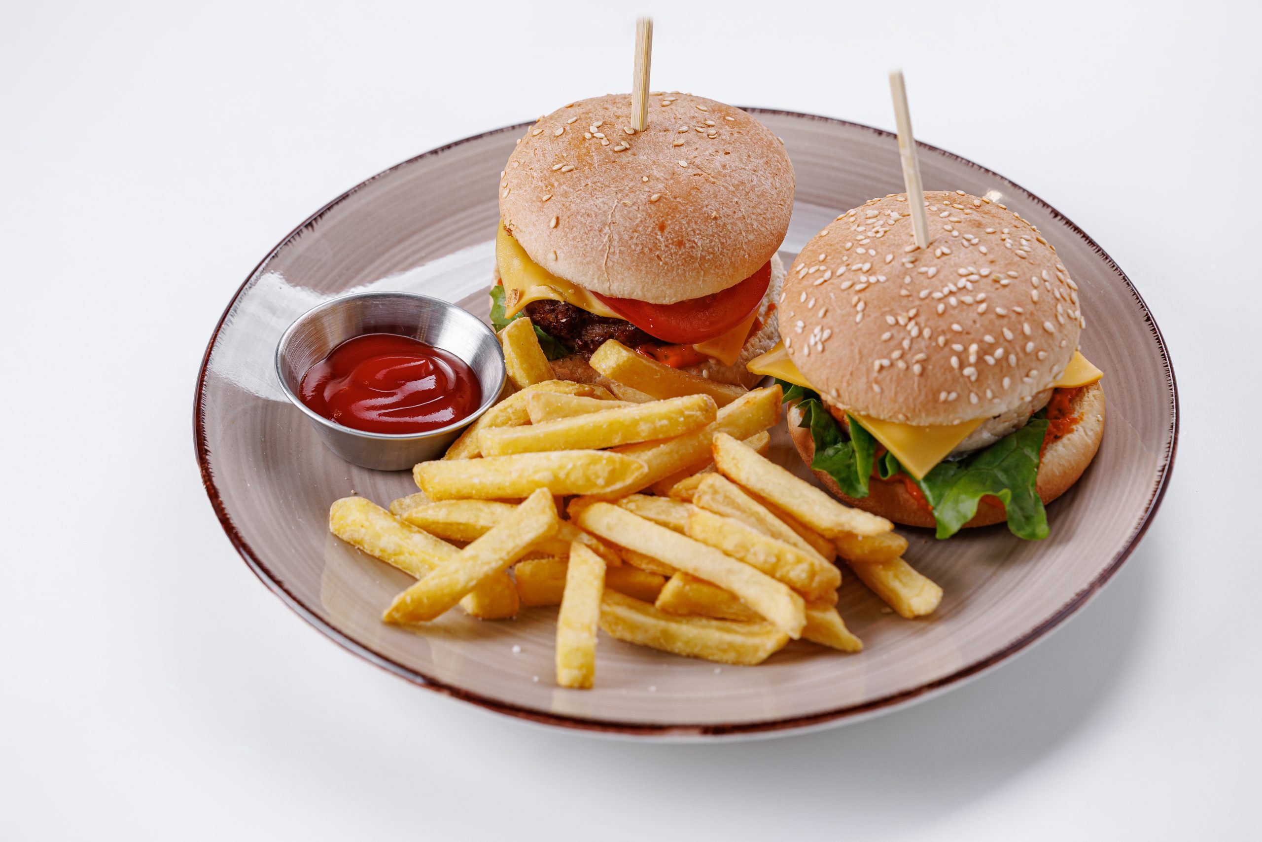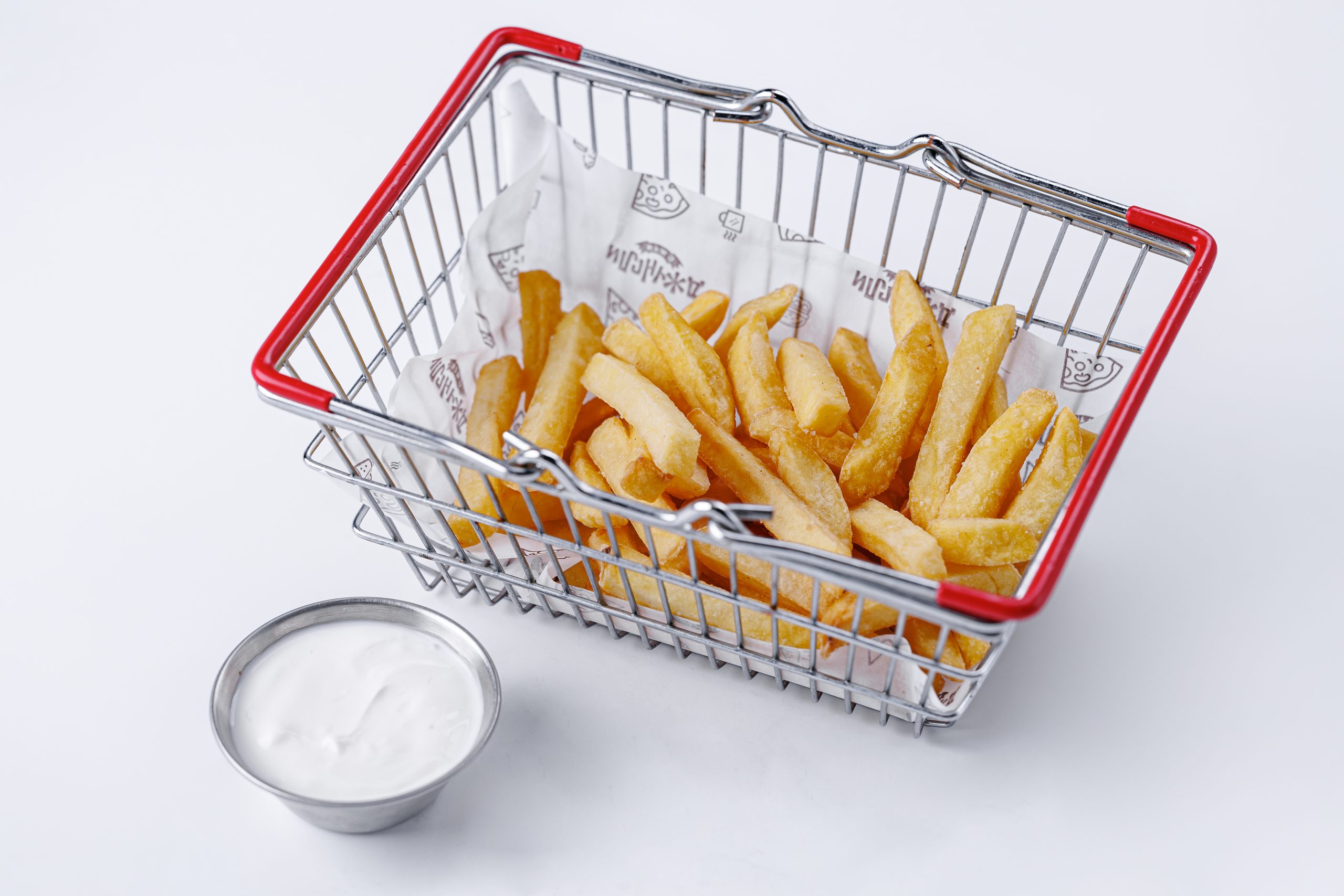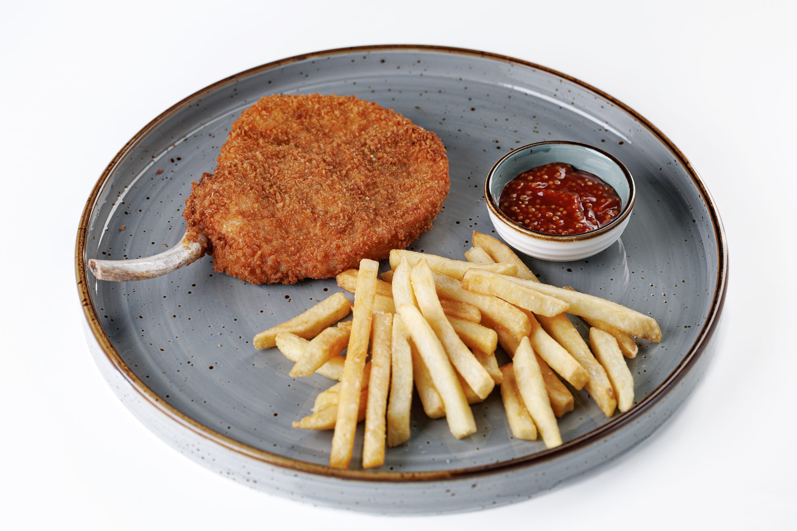 (420/100/50 гр) подаётся с кетчупом и картофелем фри