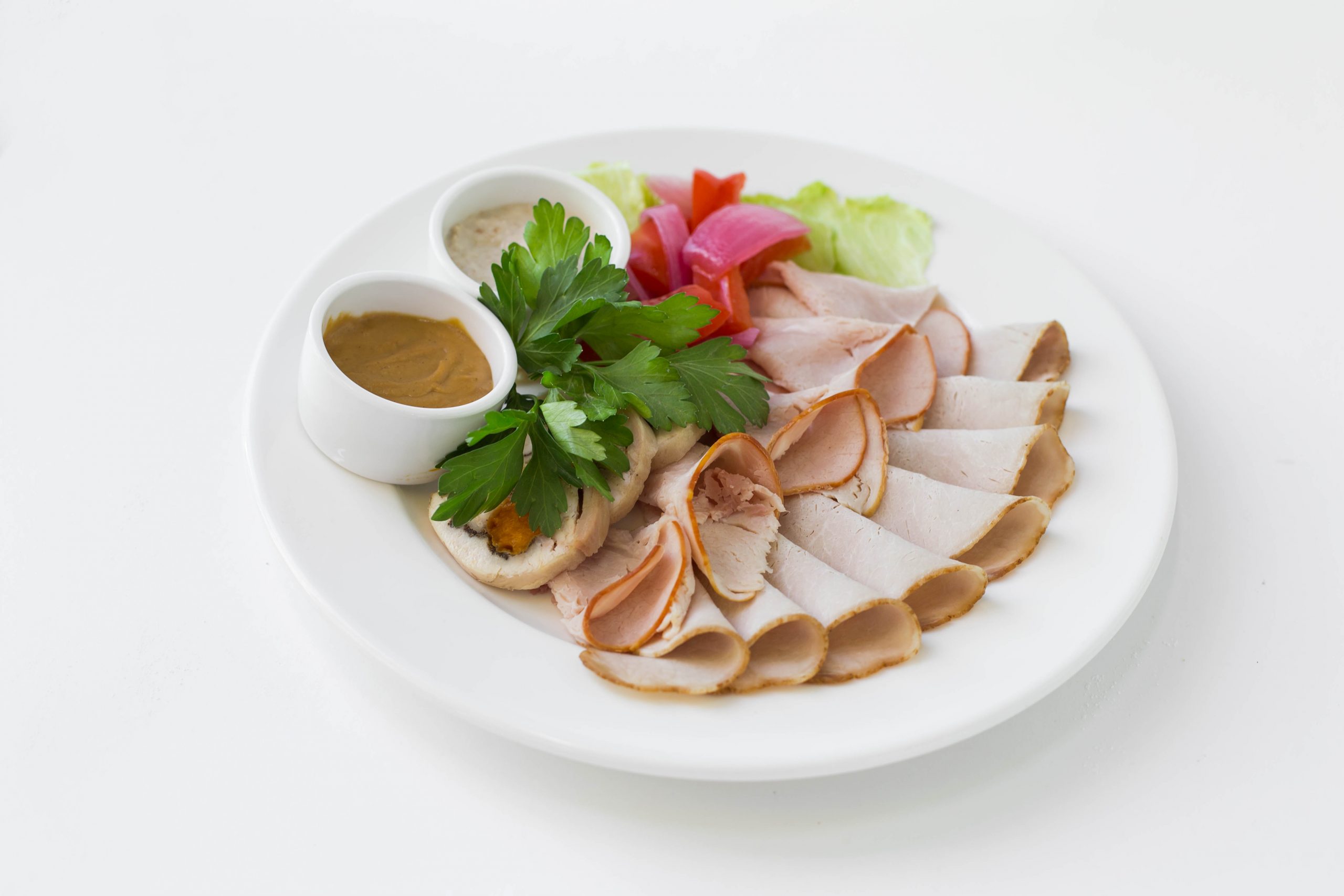 (200/60/80 гр) карбонад в/к, буженина, рулет куриный, маринованные овощи, хрен и горчица