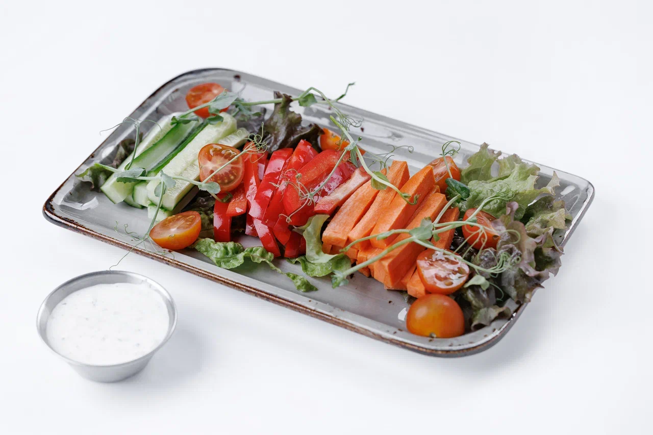 (150 гр) Овощные палочки из моркови, огурца, сладкого перца, с соусом тар-тар