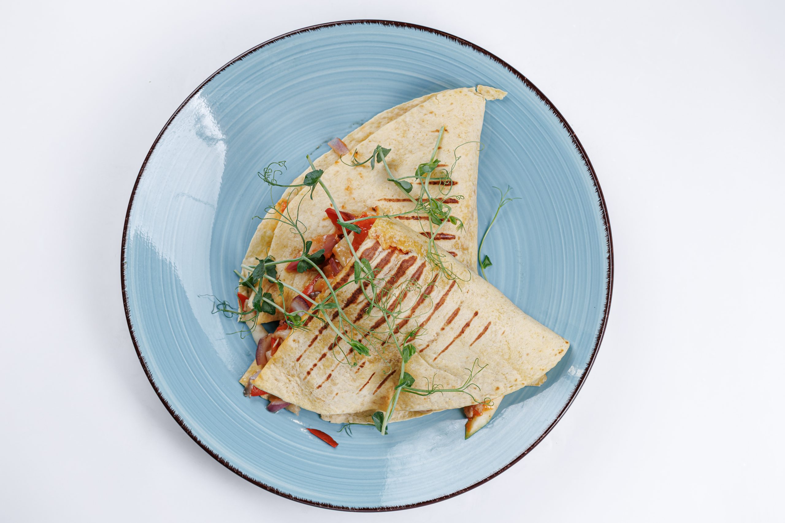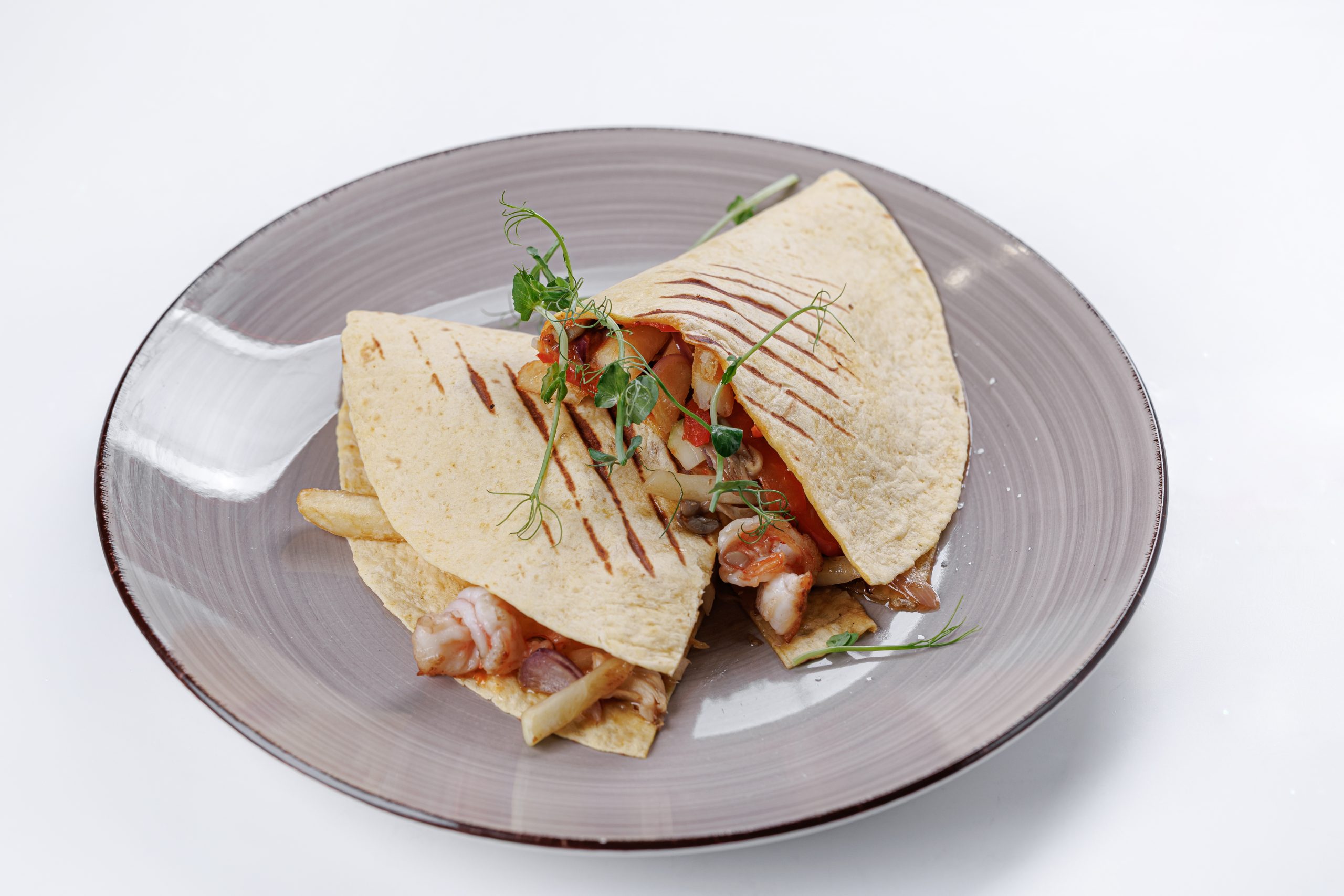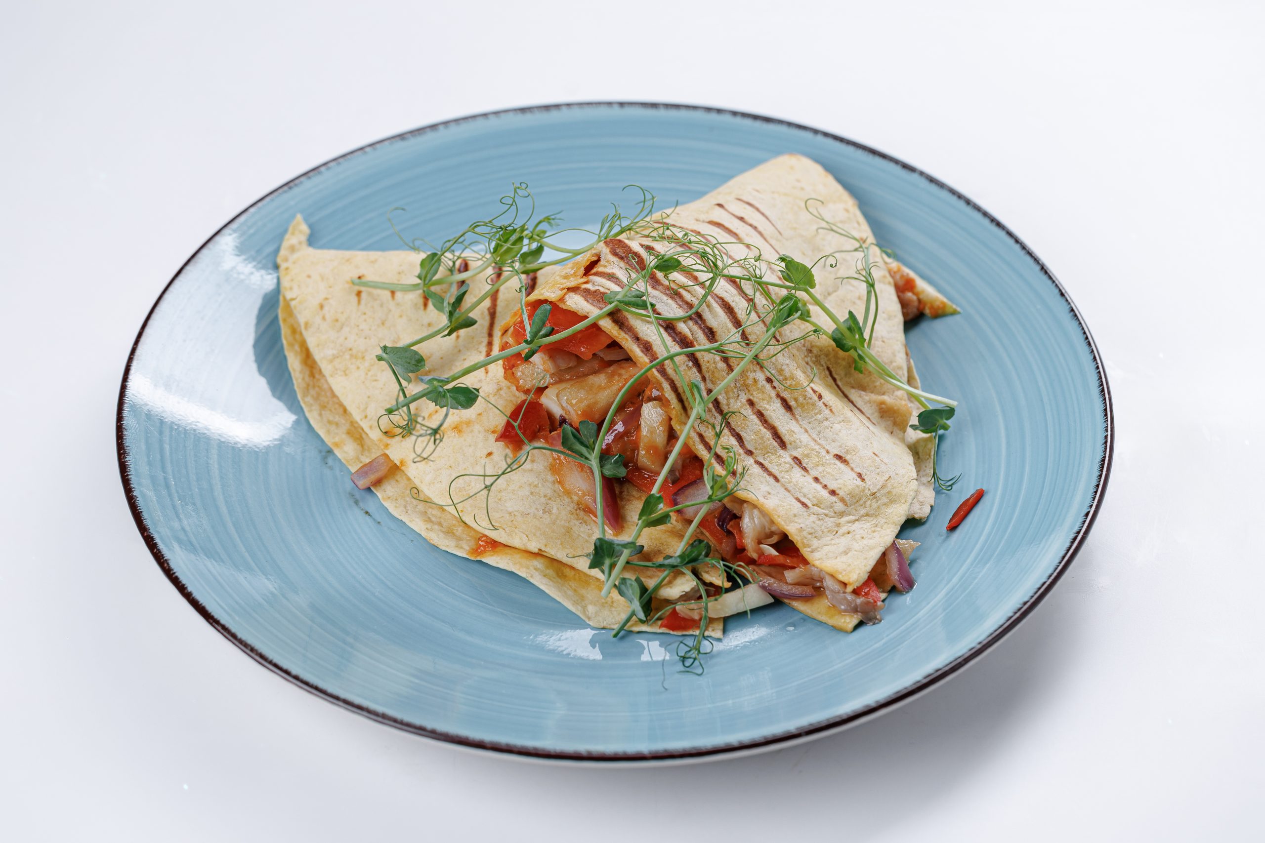 (300 гр) Тортилья, соус чипотле, картофель фри, перец болгарский, томаты, цукини, вешенки, красный сладкий лук