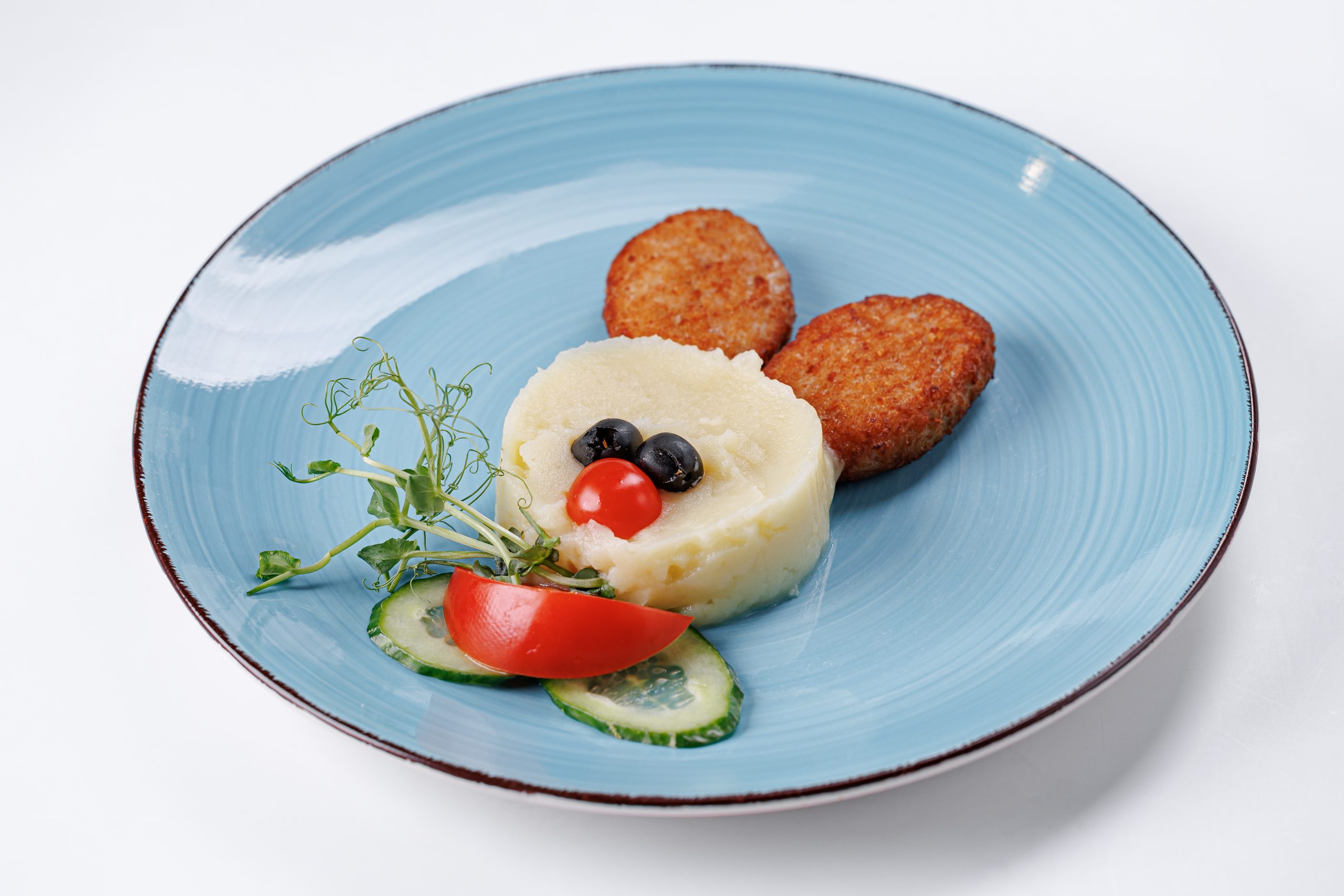 (90/100/70гр) куриные котлетки с картофельным пюре и овощами
